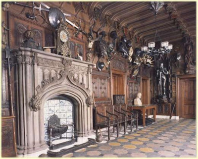 Baronial. Into various parts of the fabric were built relics and curiosities